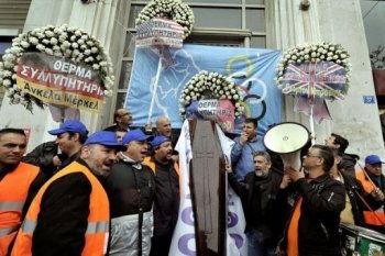 Il a suffit que l’une des trois « agences de notations » – privées –qui sont chargées par les plus gros « investisseurs » de les mettre en garde contre les risques de défauts de paiements « dégrade la note » de la Grèce pour que ce pays soit littéralement cloué au pilori par les porte paroles monétaires de l’ « Union ». Tour à tour, MM. Trichet, président de la Banque centrale européenne; Junker, président de l’Eurogroupe – qui réunit les ministres des finances de la zone -; Almunia, commissaire européen aux affaires économique et financières, ont exercé des pressions inouïes sur le gouvernement socialiste tout juste élu pour lui arracher un plan d’austérité sans précédent.
