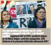 Certes, individuellement,certains des signataires de ce document n’ont pas attendu cette occasion pour critiquer sévèrement le modèle libéral européen, à plus forte raison sa dérive actuelle.De même, la Confédération européenne des syndicats a parfois eu des mots légitimement durs à l’encontre de certaines « réformes » européennes, tel le sinistre « pacte pour l’euro plus ». Mais là, il s’agit d’autre chose,puisque des appréciations (très pertinentes) sur cette « crise politique »,tout comme des exigences de changements plus que bienvenues -notamment celle d’ « une nouvelle politique monétaire,économique et sociale » en Europe,incluant des transformations institutionnelles majeures, en particulier en ce qui concerne le coeur de l’actuelle zone euro,à savoir la Banque centrale européenne- engagent cette fois personnellement et ensemble des personnalités représentant un éventail syndical européen englobant la CGT et la CFDT, les syndicats laïques et chrétiens belges, les deux grandes centrales espagnoles, la CGIL italienne et la puissante fédération allemande DGB !