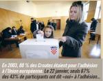 Le « oui » l’a donc emporté, comme prévu, en Croatie, où les citoyens avaient à se prononcer, dimanche dernier par référendum, sur l’adhésion de leur pays à l’Union européenne. Il appartient à présent aux 27 parlements nationaux de l’UE de se prononcer à leur tour. En cas d’accord unanime les « 27 » deviendront les « 28 » le 1er juillet 2013.